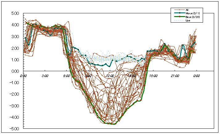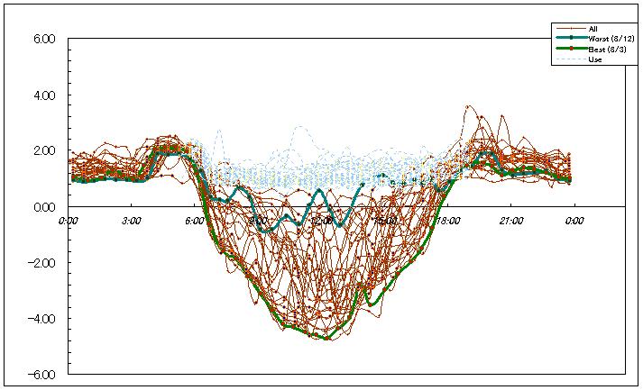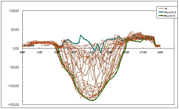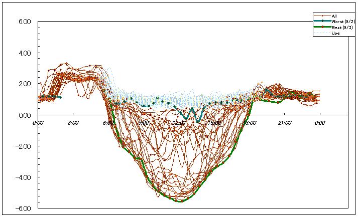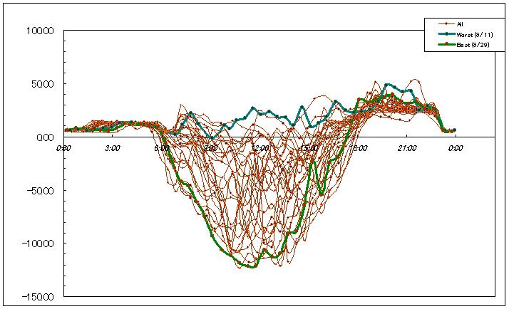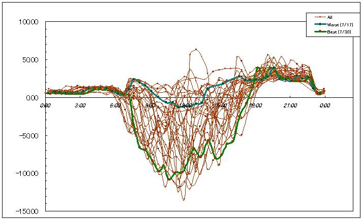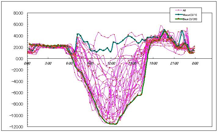 実際 | 予測 | 最大 | 昼間 | 朝晩 | 深夜 | 合計 | 昼間 | 朝晩 | 深夜 | 合計 | |||||||||